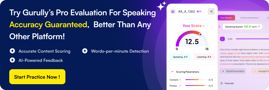 Once you’re familiar with the PTE Core score chart, the next step is focused preparation. Gurully offers full-length PTE mock tests, section-wise practice, and free question-wise, which mirror the real exam format. Our tests are curated by experts and include predictive questions to make you exam-ready. With instant, accurate scoring, you can track your progress and plan your preparation effectively. Don’t forget to subscribe to our YouTube channel for the latest tips, strategies, and updates on the PTE Core exam.